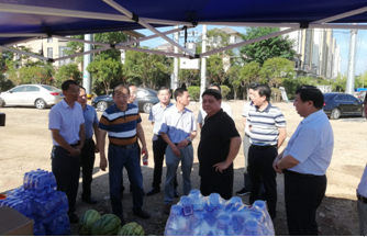 烈日下的八一大橋項目現(xiàn)場一片繁忙景象,工人們有的在支模、有的在焊接鋼筋、有的在澆筑砼,一切都井然有序,忙而不亂。屯溪區(qū)區(qū)委書記江善良一行一到現(xiàn)場,就將一件件防暑降溫慰問品遞到在施工的工人們手中,并囑咐在高溫下施工的操作人員要多注意休息、及時補充水分和營養(yǎng),按項目部要求合理安排工作時間,避免中午高溫時間段施工,同時要求項目部積極做好防暑降溫工作,保障施工一線工人的生命安全。充分體現(xiàn)了屯溪區(qū)委、區(qū)政府等領(lǐng)導(dǎo)對我集團(tuán)公司的一片深情厚誼和關(guān)懷。