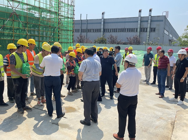 近日,黃山市天氣持續(xù)高溫酷熱,驕陽似火,黃山博盛消防裝備有限公司新廠區(qū)1-2#車間及研發(fā)中心工人仍堅守在施工一線,頂烈日,搶工期。7月26日上午,屯溪區(qū)委書記吳旭光、區(qū)委副書記、區(qū)長楊林,區(qū)人大常委會主任朱學(xué)軍,區(qū)政協(xié)主席袁震宇,區(qū)政協(xié)副主席杜祖紅等一行深入工地現(xiàn)場,開展“送清涼進(jìn)工地”活動,看望慰問項目部一線職工。