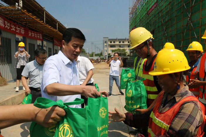 在項目施工現(xiàn)場,區(qū)委書記吳旭光代表區(qū)委區(qū)政府向在高溫下作出辛勤工作的工人們表示深深的敬意,將防暑降溫物品送到他們手中,并叮囑他們要勞逸結(jié)合,注意身體健康。并要求項目部要科學(xué)安排作息時間,制定高溫應(yīng)急預(yù)案,加強(qiáng)施工現(xiàn)場安全管理,確保高溫時期工地安全生產(chǎn)形勢穩(wěn)定。
