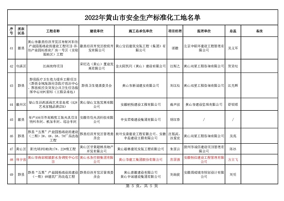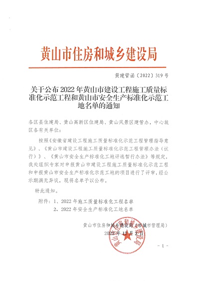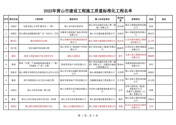 黃山市建工集團股份有限公司承建的徽州家園項目、歙縣人民醫(yī)院醫(yī)療能力提升項目、黃山橫江灣凱悅酒店項目、高鐵黟縣東站站前廣場及附屬配套工程、黃山市南部城鎮(zhèn)群水務(wù)調(diào)度中心項目、黃山北海路公交綜合大樓工程榮獲2022年施工質(zhì)量標準化工程和安全生產(chǎn)標準化工地的殊榮。