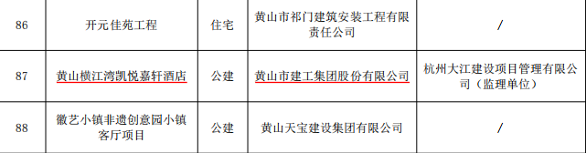 近日,黃山市住房和城鄉(xiāng)建設(shè)局公布了2025年度黃山市建設(shè)工程“迎客松杯”獎獲獎名單。黃山建工集團承建的安徽黃山省級糧食儲備庫倉庫擴建9#平房倉項目、黃山區(qū)2019-15地塊6#樓項目及黃山橫江灣凱悅嘉軒酒店項目成功斬獲三項“迎客松杯”獎。